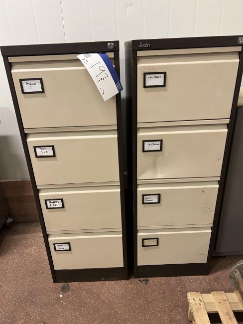 Two x Four Drawer Filing Cabinets, approx. 0.62m x 0.46m x 1.3m high, lift out charge - £10 + VAT, lot located in Haughley Park, Suffolk